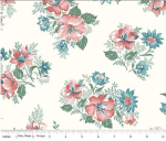 107/108" wide quilting fabric in premium cotton, this is Mary Catherine Floral Cloud by Riley Blake Designs. Sprays of soft red, pink, and blue flowers on a cream background, perfect for any project that needs a traditional floral motif.